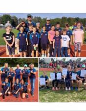 Unsere Bambinis (Jahrgang 2015-2017) gingen mit 2 Mannschaften an den Start . Voller Eifer liefen sie über die 50m, sprangen in die Weitsprunggrube, warfen den Ball und feuerten sich beim Stadion-Cross kräftig an. Dieser Einsatz wurde am Schluss belohnt. Die Bambinis TVR 1 erreichten einen hervorragenden 4.Platz. Das Team 2 erkämpfte sich den 11 Rang von 14 Mannschaften. Das Training bei Eva, David und Achim hat sich absolut gelohnt. Vielen Dank für den Einsatz bei den wöchentlichen Trainings und die tolle Motivation bei den Wettkämpfen. Im nächsten Jahr greifen sie wieder an und vielleicht springt ja dann ein Podestplatz heraus. Mit im Team waren Malia Liv, Julian, Maximilian, Antonia, Leni, Mara, Max, Laurin, Jana, Laura, Jonathan, Luisa, Annika, Gabriela, Elsa, David und Milena.